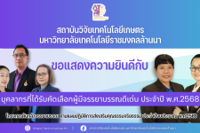 สถาบันวิจัยเทคโนโลยีเกษตร มทร.ล้านนา ขอแสดงความยินดีกับบุคลากรที่ได้...
