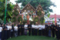 จากนั้นได้มีขบวนแห่สะเปาหลวงและโคมสายจากลานศาลหลักเมืองนครลำปางไปยังท่าน้ำสิงห์ชัย โดยใช้เส้นทางผ่านถนนทิพย์ช้าง ก่อนล่องสะเปาหลวงลงสู่แม่น้ำวัง