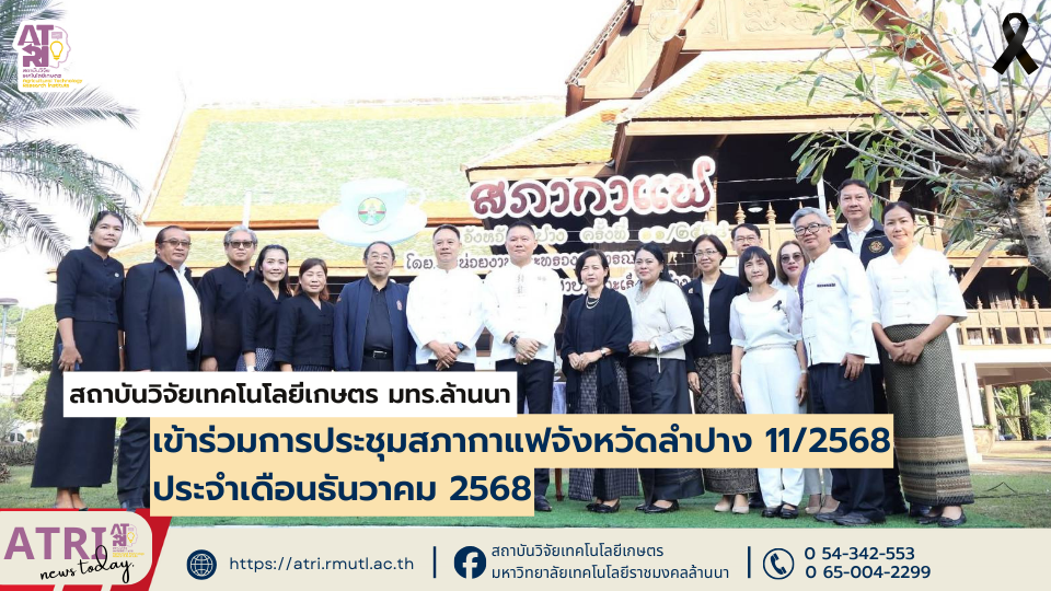 เช้าวันที่ 19 ธันวาคม 2568 นางสาวอชิรญา จักรบุญมา ผู้ช่วยผู้อำนวยการด้านการพัฒนาองค์กรและสื่อสาร ผู้แทนผู้อำนวยการสถาบันฯ เข้าร่วมการประชุมสภากาแฟจังหวัดลำปาง 11/2568 ประจำเดือนธันวาคม 2568