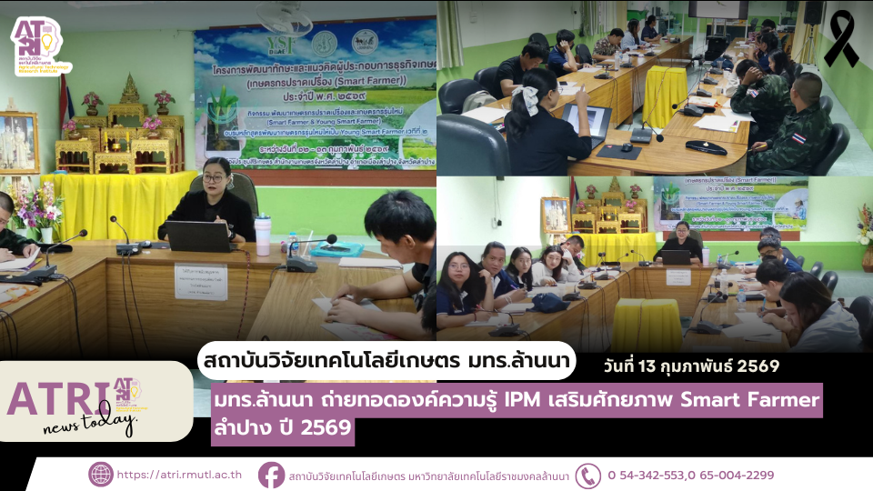 วันที่ 13 กุมภาพันธ์ 2569 ผู้ช่วยศาสตรจารย์ศิริพร อ่ำทอง นักวิจัยจากสถาบันวิจัยเทคโนโลยีเกษตร มทร.ล้านนา เป็นวิทยากรถ่ายทอดองค์ความรู้ ในหัวข้อ “การควบคุม จัดการโรคและแมลงศัตรูพืช (การจัดการศัตรูพืชแบบผสมผสาน)” โดยสำนักงานเกษตรจังหวัดลำปาง ได้จัดโครงการพัฒนาทักษะและแนวคิดผู้ประกอบการธุรกิจเกษตร (เกษตรกรปราดเปรื่อง Smart Farmer) ประจำปีงบประมาณ 2569 ภายใต้กิจกรรม “พัฒนาเกษตรกรปราดเปรื่องและเกษตรกรรุ่นใหม่ (Smart Farmer & Young Smart Farmer)” เพื่อส่งเสริมศักยภาพเกษตรกรให้ก้าวสู่การเป็นผู้ประกอบการเกษตรยุคใหม่ที่มีความรู้ ความสามารถ และทักษะในการผลิต การแปรรูป และการบริหารจัดการสินค้าเกษตรอย่างมีประสิทธิภาพ
