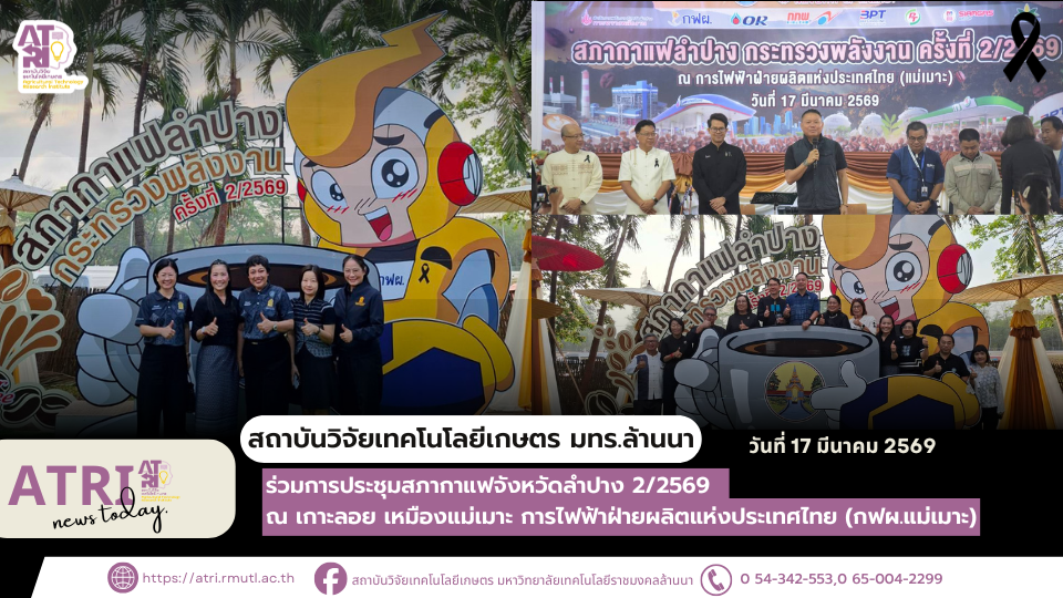 เมื่อวันที่ 17 มีนาคม 2569 นางสาวอชิรญา จักรบุญมา ผู้ช่วยผู้อำนวยการด้านการพัฒนาองค์กรและสื่อสาร ได้รับมอบหมายจากท่านผู้อำนวยการ ฯ เข้าร่วมการประชุมสภากาแฟจังหวัดลำปาง 2/2569